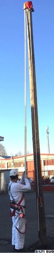 Rabbit Kit for ascent, parking and descent with ladders on wooden and fiberglass pole, allows the operator to create an anchor point, in a few seconds, at the top of the pole in order to allow safe handling on the same.