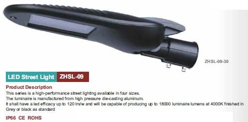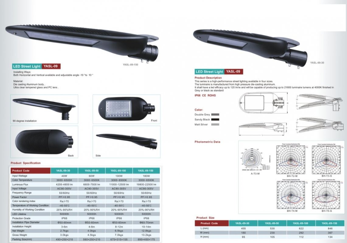 Led stradali con potenza variabile su quattro modelli: 40W, 60W, 80W, 100W, 180W.