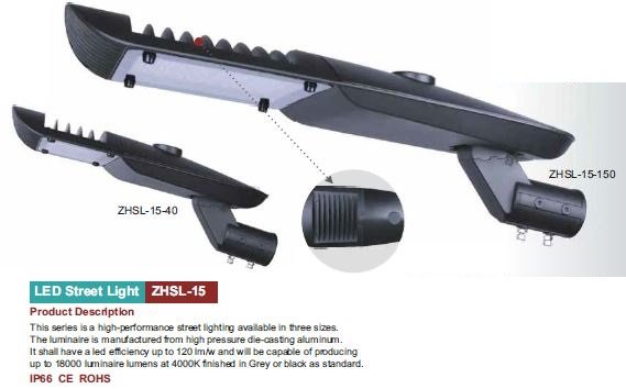 Led stradali con potenza variabile su tre modelli: 40W, 80W, 150W.