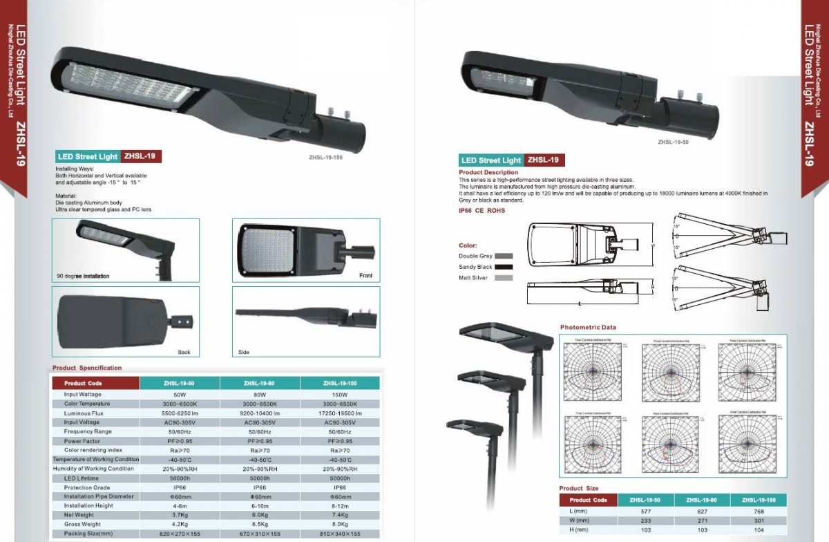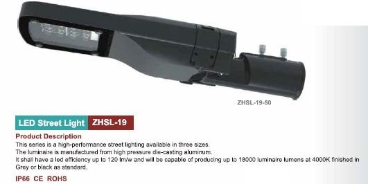 Led stradali con potenza variabile su tre modelli: 50W, 80W, 150W.
