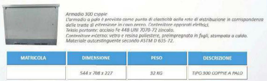 L’armadio a palo è previsto come punto di elasticità della rete di distribuzione in corrispondenza delle tratte di estensione in cavo aereo.