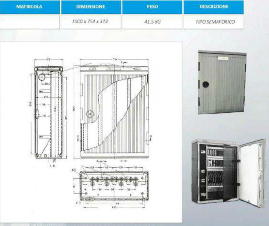 Possibilità di contenere testarmadi da 100 cp, 50 cp, 30 cp, morsettiere a 10 cp, cassette duplex.