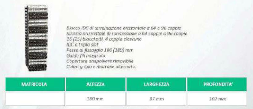 Blocco IDC di terminazione orizzontale a 64 o 96 coppie