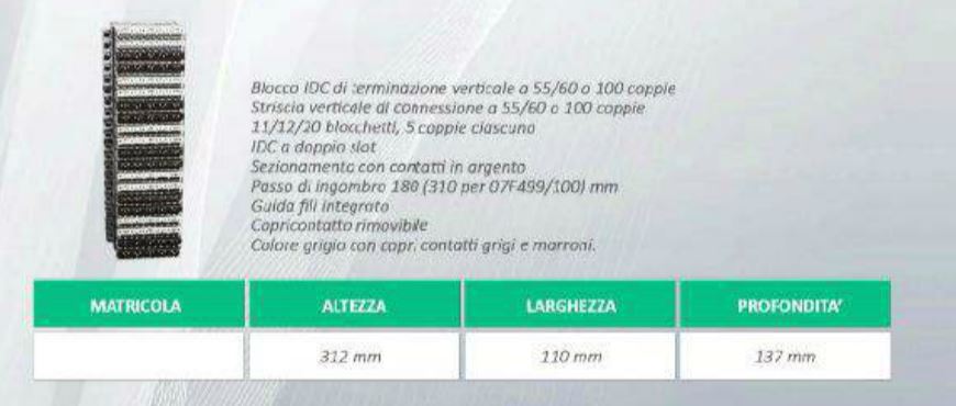 Striscia verticale di connessione a 55/60 o 100 coppie