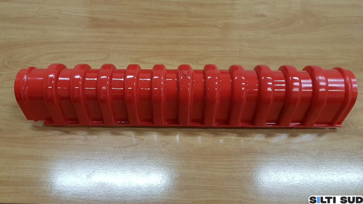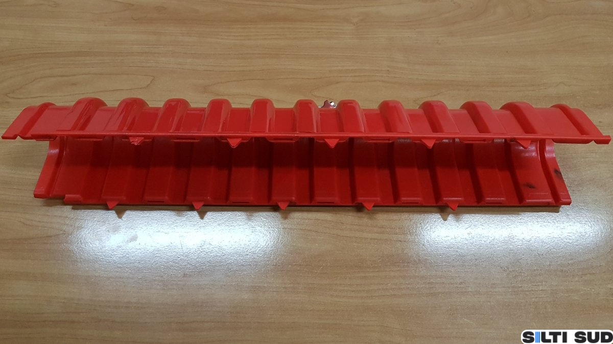 La canalina è innervata sulla sua parte curva da una pluralità di sporgenze e rientranze, abbraccianti l’intero profilo, poste ad opportuna distanza fra loro per irrigidire il manto.